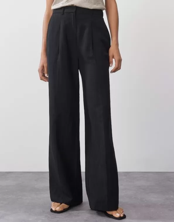 Die Bundfaltenhose Wirkt Nicht Nur Durch Das Lange, Weite Bein, Sondern Auch Durch Den Hochwertigen Leinen Mix Besonders Elegant.