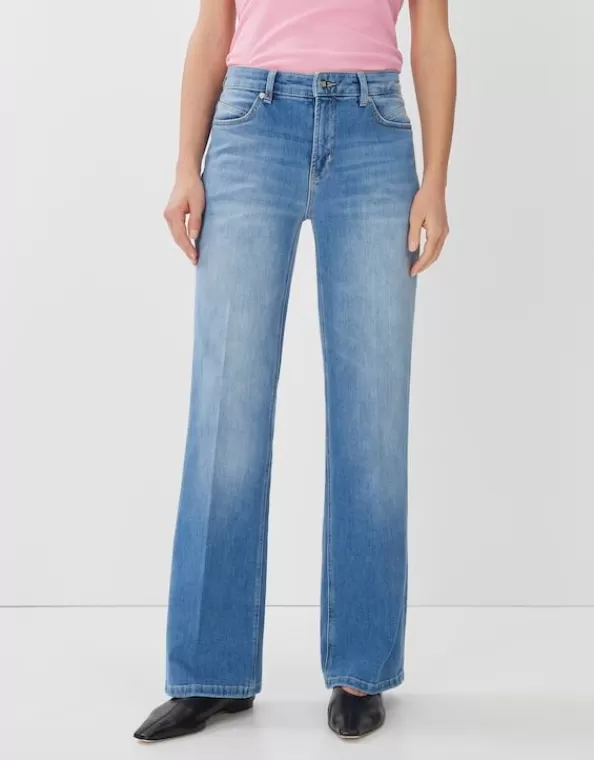 Die Flared Jeans Streckt Das Bein Durch Die Dezente Bügelfalte In Der Waschung Und Überzeugt Mit Femininem Beinverlauf.